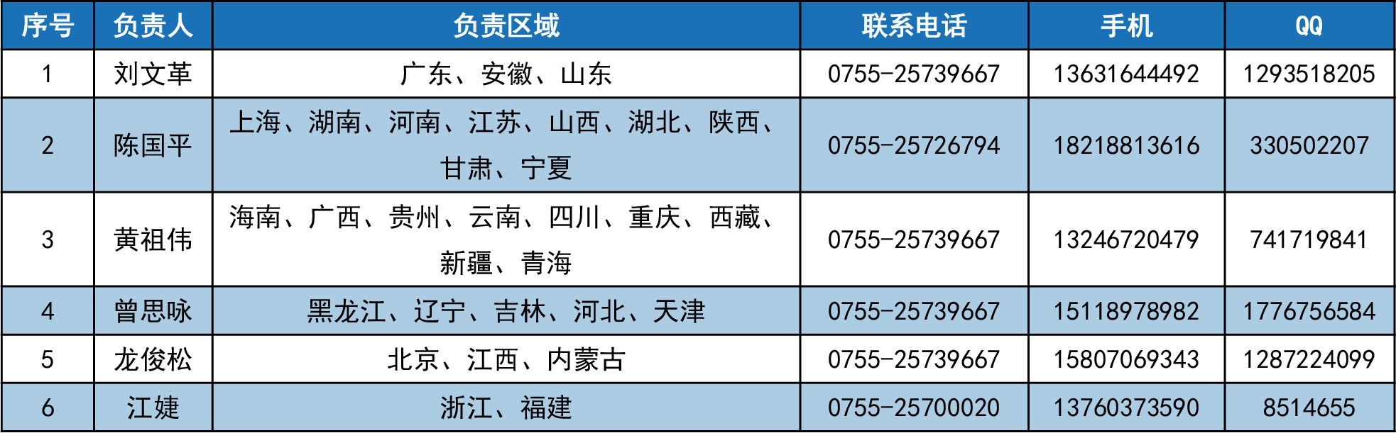 各省份負(fù)責(zé)人聯(lián)系方式